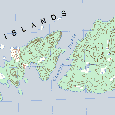 Bragg's Island, Deer Island and Green's Island on the north side of Bonavista Bay southeast of Trinity