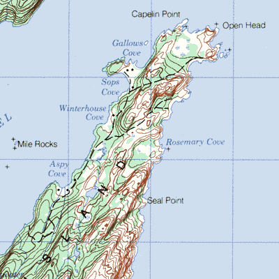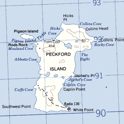 Coppett on a peninsula between White Bear Bay to the west and Bay de Vieux to the east near Ramea